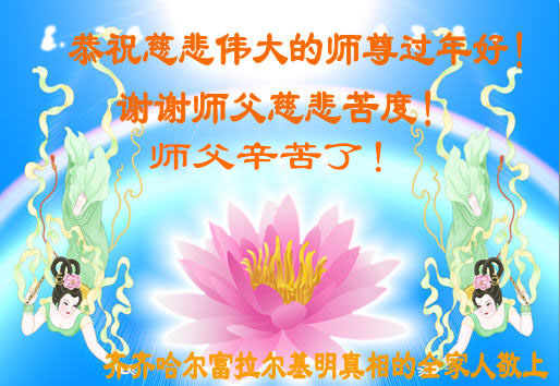 【明慧网二零一四年一月三十日】 黑龙江省齐齐哈尔市富拉尔基区明真相的全家人恭祝慈悲伟大的师尊过年好!