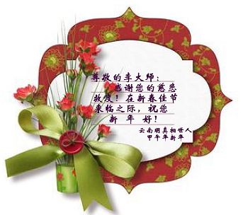李老师:您好!学生给您拜年了!祝李老师新年快乐! 大陆大法弟子的亲人祝师父新年好!
