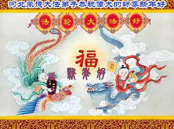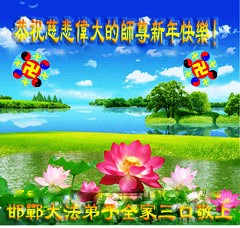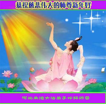 在新年到来之际,弟子祝愿师尊过年好!在过去的一年中,每当弟子感到某一关快要过不去的时候,只要想到师父,信师信法,把一切交给师父,最后的结果就出奇的好。弟子感恩师尊!弟子代表全家给师父叩拜!愿在新的一年中加快速度,修自己,多救众生。 河北邯郸大法弟子恭祝慈悲伟大的师尊新年快乐!