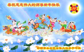 【明慧网二零一四年一月三十日】 河北省邯郸市丛台区全体大法弟子恭祝慈悲伟大的师尊新年快乐!