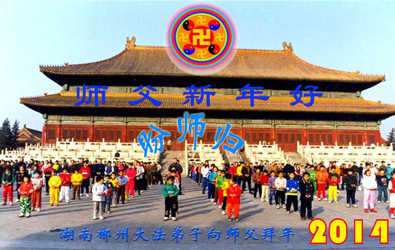 祝师尊新年好,湖南郴州一家修炼人在二零一四年新春,给师尊拜年! 我们一定学法,向内修,讲真相多救人。 湖南新化一老年大法弟子叩拜恭祝师尊新年好!