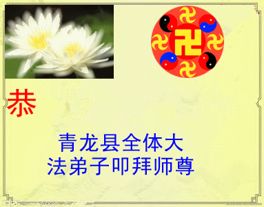 谢谢师尊过去一年中的慈悲呵护!在新的一年里,我们要更加带好小同修,共同精進,修好自己,遇事真心向内找,努力做好三件事。再一次祝愿师父新年好!新年快乐!叩拜! 河北省秦皇岛市青龙县全体大法弟子给师父拜年,恭祝师父过年好!