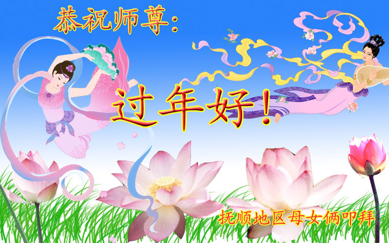 感谢师尊的慈悲苦度!谢谢师尊的慈悲加持!师尊:您辛苦了!在这阖家欢聚之时,我们抚顺大法弟子万分想念伟大的师尊!用尽人类的语言也无法表达我们对师尊的感恩!请师尊放心:我们抚顺大法弟子一定能形成整体,遇事向内找,做好“三件事”,救度好众生,“满载众生法船开”。 辽宁省抚顺地区母女俩大法弟子恭祝师尊过年好!