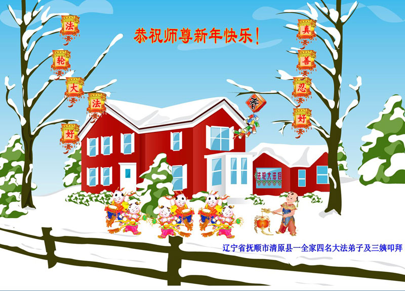 辽宁省抚顺市清原县一全家四名大法弟子及三姨恭祝师尊新年快乐!