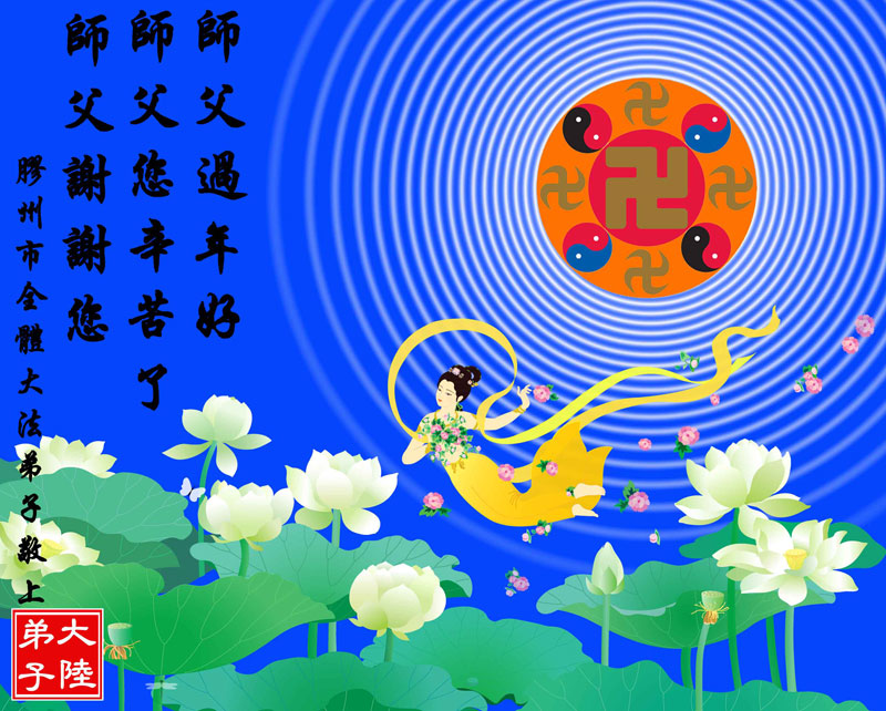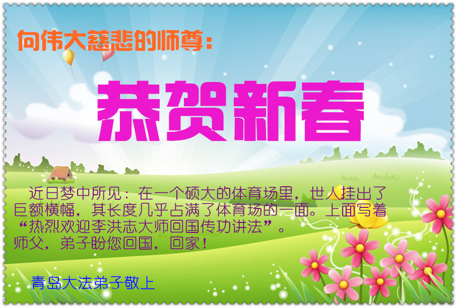 师尊好!恭贺师尊新年快乐!!!青岛市大法弟子敬上 恭祝慈悲伟大的师父过年好!