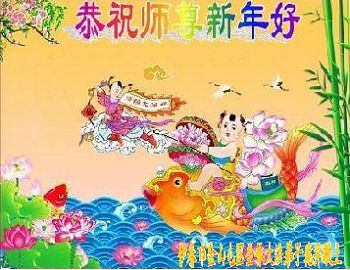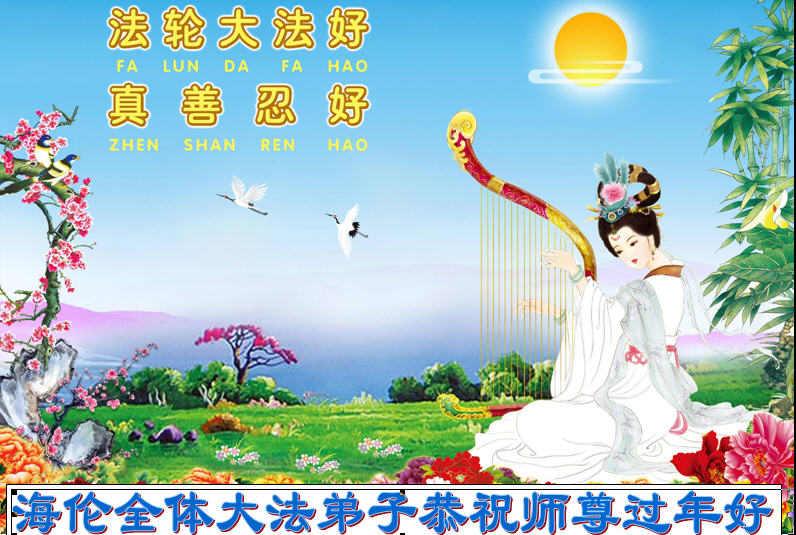 等待大法千万年 今生幸遇大法传 师尊辛苦铺路垫 弟子感恩道不完 天天学法入心田 神路慈悲感人间 五套功法静心炼 同化本体显超然 心慈念正恶胆寒 证实大法神威显 救度众生上法船 一十四载心魔炼 整体配合携手前 救人不怠数量满 返本归真同回天 亿万法徒亿扬帆 甲午年同贺赞 恭祝师尊笑开颜 黑龙江省伊春市青年大法弟子恭祝师尊新年好!