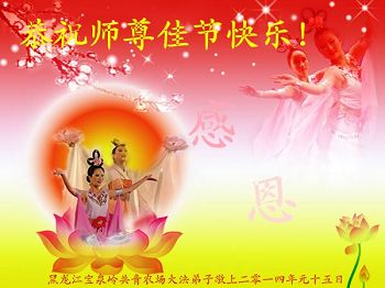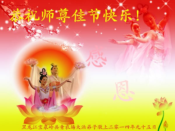 弟子们一定勇猛精進,做好三件事,以慰师恩。 黑龙江宝泉岭大法弟子恭祝师尊佳节好!