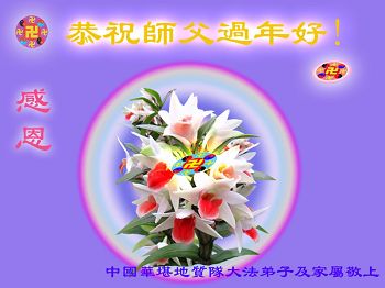 胜利油田大法弟子一家三口恭贺师父新年快乐!