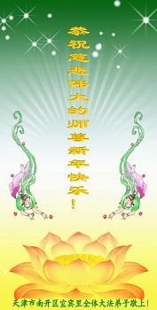 天津市南开区宜宾里全体大法弟子恭祝师尊新年快乐!