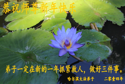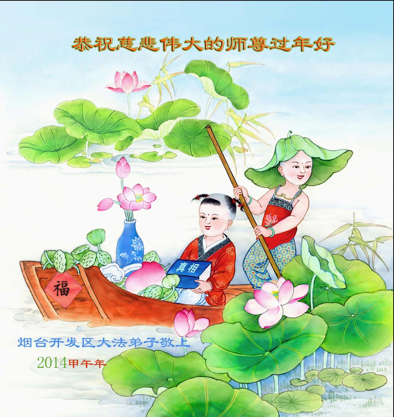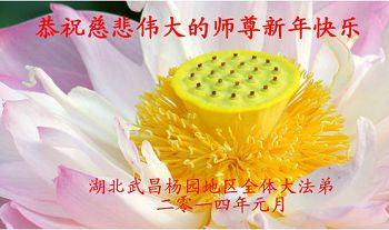 在甲午年来临之际,弟子无比感恩师父的慈悲苦度。把我们从地狱捞起,并荣耀的成为大法弟子,成为新宇宙的生命。在得法至今的时光里,我们无比珍惜大法,珍惜修炼的机缘。我们始终以法为师,牢记师尊的教诲,用心学法,时时、事事、处处向内找,修好自己,重大事情看明慧,紧跟正法進程。在新的一年里弟子们会继续做好三件事,抓紧救人,请师尊放心。 天津宁河农村大法弟子恭祝慈悲伟大的师尊新年快乐!
