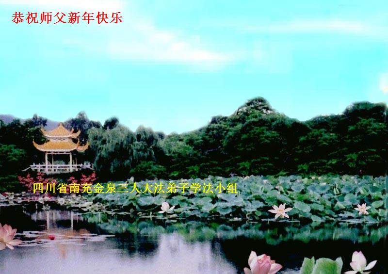 四川省南充金泉三人大法弟子学法小组恭祝师父新年快乐!
