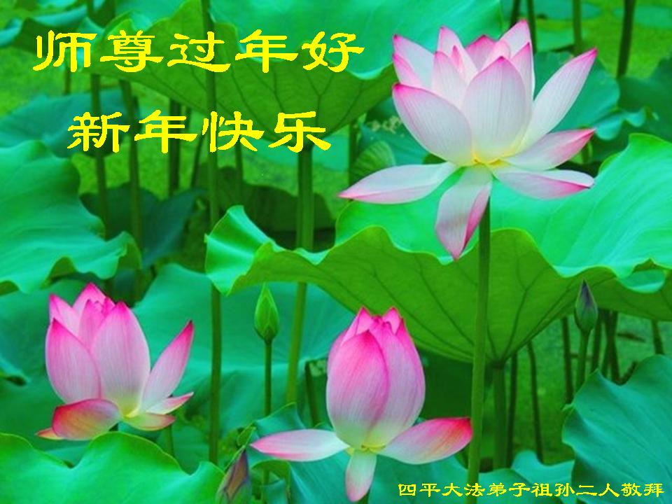 吉林省四平大法弟子祖孙二人恭祝师尊过年好!