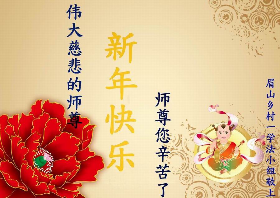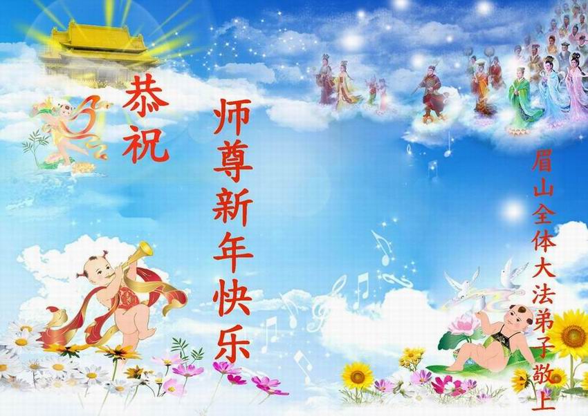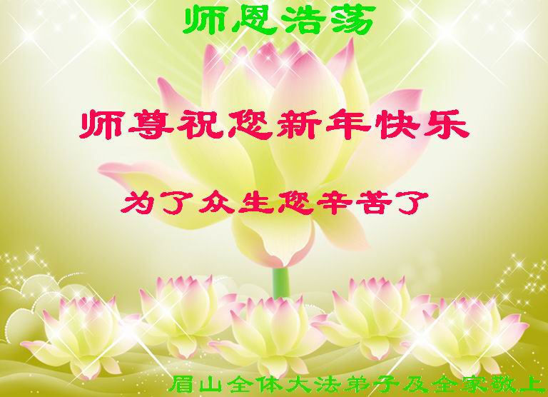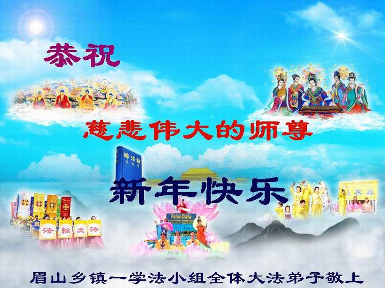 四川省眉山全体大法弟子及全家恭祝师尊新年快乐!