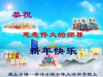 四川省眉山乡镇一学法小组大法弟子恭祝师尊新年快乐!