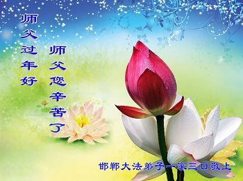 河北省邯郸大法弟子一家三口恭祝师尊新年好