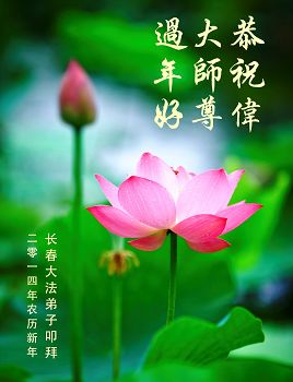 师父您辛苦了! 谢谢您的慈悲救度!谢谢您为我们的巨大承受!谢谢您对我们的细心呵护!谢谢您给我们的及时点悟!谢谢…… 我会万分珍惜这万古机缘,去除安逸心,正念正行做好三件事,跟师父回家。再次跪谢师尊! 北京一大法弟子 二零一四年一月二十六日 江苏省南京全体大法弟子向师父拜年:师尊新年好!
