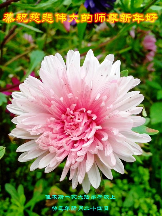 师尊您辛苦了, 您为救度大穹传天法, 众生的业债您一身挡, 弟子知您青丝斑白人体伤, 师恩洪大难表达, 只有在新的一年里学好法, 做好三件事,救度更多的众生, 让师尊少一份操劳, 多一份欣慰。 不辜负师尊的期望, 一定要勇猛精進再精進, 兑现誓约, 同化大法随师还。 癸巳年腊月二十六 山东菏泽单县大法弟子给师父拜年!祝师尊新年快乐!
