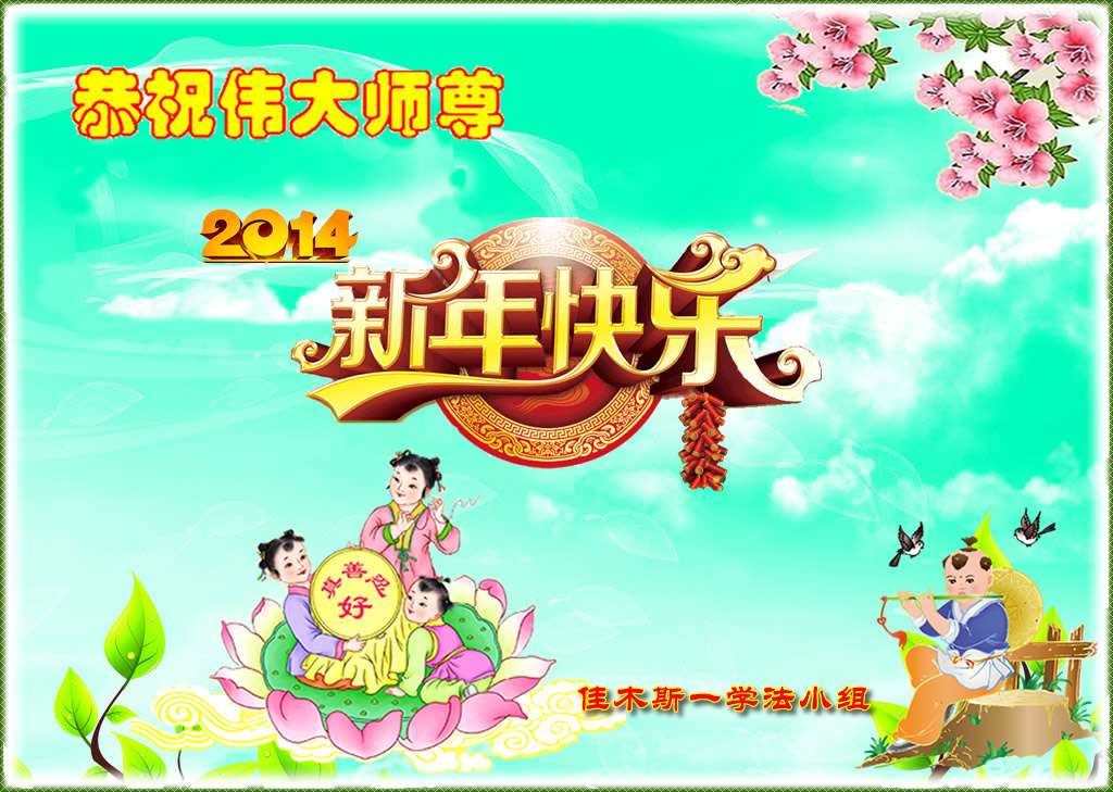 师尊新年好! 在正法修炼的路上,师父给我们的实在太多太多了,心中非常感激和感恩,为此在新年来临之时向师父问候,新年好! 我们能是师尊的大法弟子,全是师尊的慈悲苦度,只有无条件的做好师尊要求的三件事,以回报师恩! 北京市海淀区部份大法弟子。 2014年1月26日