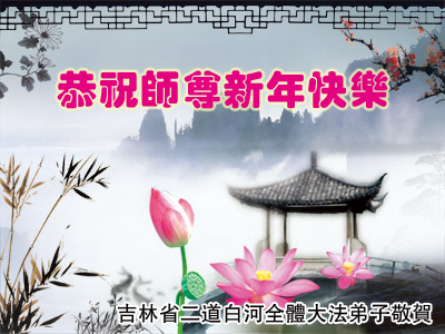感恩伟大师尊把宇宙大法传给我们!我们在新的一年里要高标准、更高标准要求自己,完成史前大愿。 吉林省二道白河全体大法弟子恭祝师尊新年快乐!