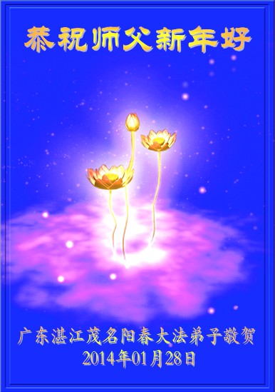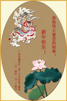 【明慧网二零一四年一月三十日】 广东省广州市越秀区一家三口大法弟子恭祝伟大慈悲的师尊新年快乐!