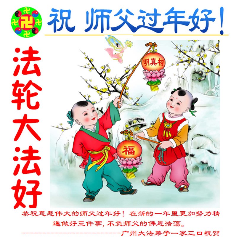 广东省广州市天河区一家三口大法弟子恭祝慈悲伟大的师尊过年好!