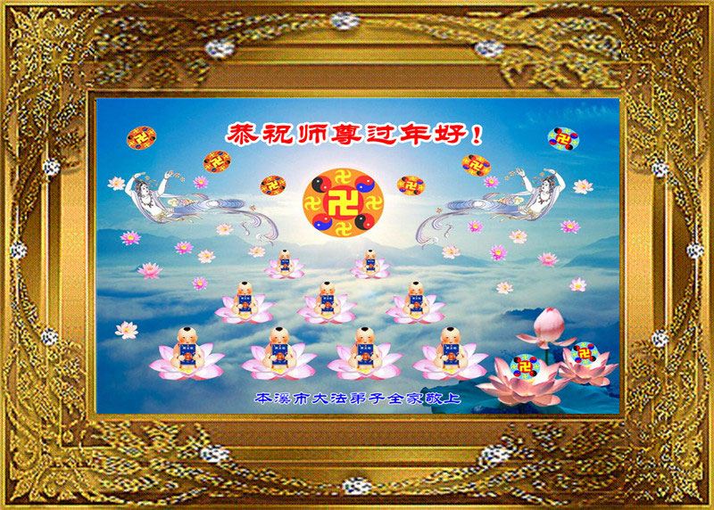 辽宁省本溪市大法弟子全家恭祝师尊过年好!