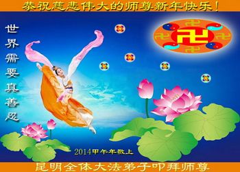 昆明市全体大法弟子恭祝慈悲伟大的师尊新年快乐!