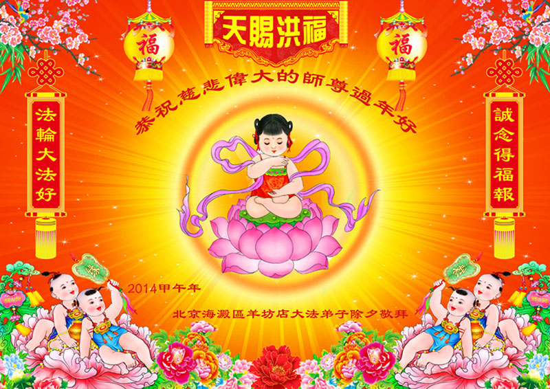 【明慧网二零一四年一月三十一日】 北京丰台嘉园路大法弟子恭祝慈悲伟大的师父新年快乐!