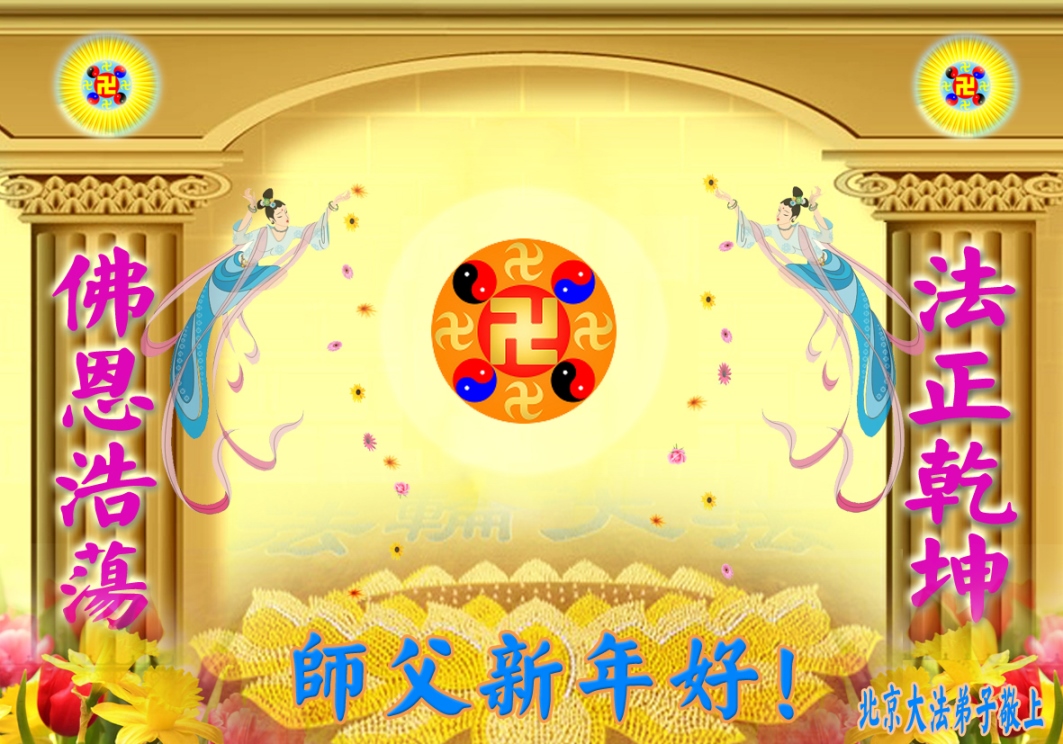 在传统的新年即将到来之际,我们给慈悲伟大的师尊拜年:师尊过年好!在新的一年里,我们一定要更加精進,做好三件事,精心学好法,多学法,遇事向内找,多发正念,多救人,走好每一步,不忘肩负使命。请师尊放心。 北京北蜂窝大法弟子恭祝师尊过年好!