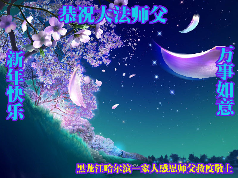 【明慧网二零一四年一月三十一日】 黑龙江省哈尔滨市双城市大法弟子全家恭祝师尊新年快乐!
