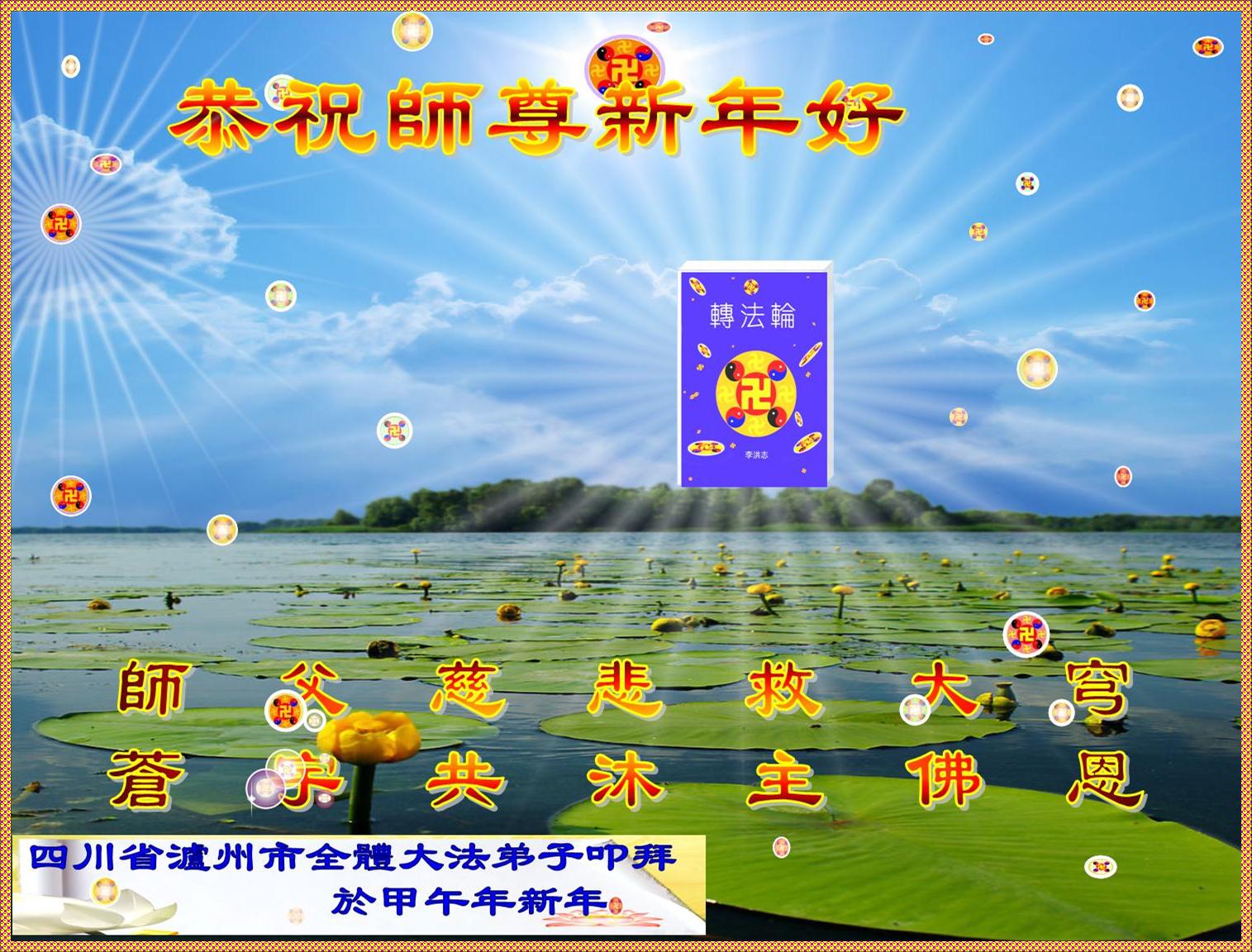 师父新年好!师父您辛苦了! 弟子们感激师父赐予珍贵的修炼机缘。我们决心在修炼的路上精進不止,去掉所有的人心,做好三件事,跟师父回家。 四川省泸州市全体大法弟子恭贺师尊新年好!