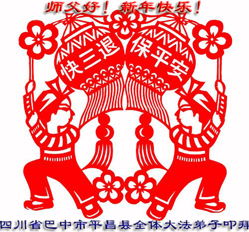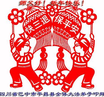 【明慧网二零一四年一月三十一日】 四川省广元市苍溪县两大法弟子及全家恭祝慈悲伟大的师尊新年快乐!