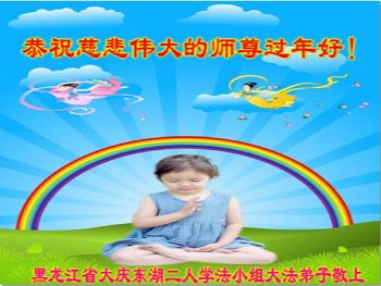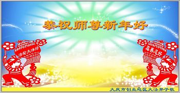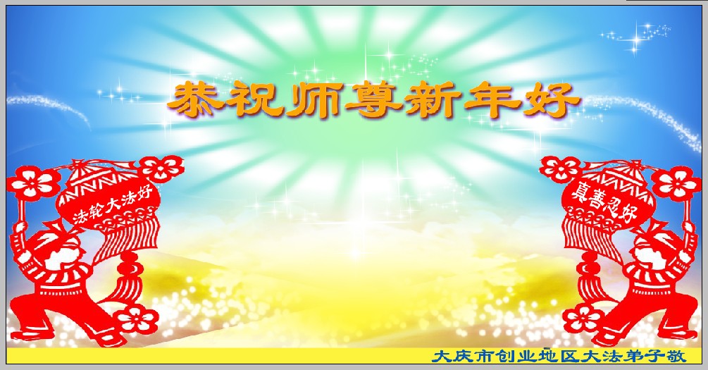 师尊新年好,师尊新年快乐,弟子用尽人的语言也说不完对您的救度之恩,只有尽心尽力做好三件事,以报师恩。 大庆市东风新村一学法小组弟子敬上 黑龙江省大庆大法弟子恭祝师尊过年好!