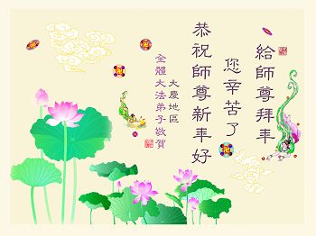 跪拜师尊再精進,讲清真相救世人; 学法不怠了宏愿,正法功成随师还; 黑龙江省大庆市让胡路区长青、阳光佳苑大法弟子恭祝师尊新年快乐!