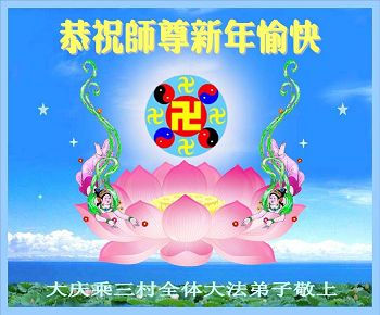 黑龙江省大庆乘三村全体大法弟子恭祝师尊新年愉快!