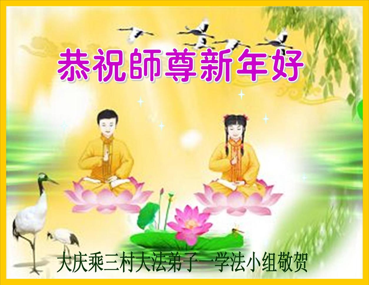 黑龙江省大庆乘三村一学法小组大法弟子恭祝师尊新年好!