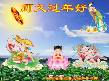 师尊,弟子给您拜年了!祝师父新年快乐! 师父您辛苦了,为了宇宙、为了众生,师父操尽了心,师父的佛恩浩荡,使世人越来越清醒,明白真相,得到大法的救度,在大法中归正,弟子替世人感谢师父,同时更感谢师父对弟子的一路呵护,弟子只有更加精進实修自己,按师父的要求努力做好三件事,助师正法,多救世人以报师恩。 弟子合十!谢谢师父! 江苏淮安大法弟子跪拜 二零一四年一月二十五日 四川大法弟子及家人敬祝师父新年好!