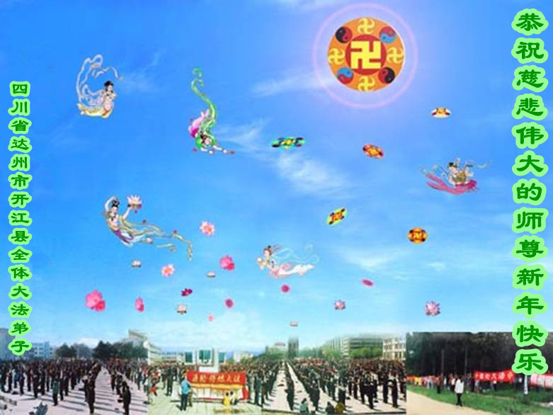 四川省达州市开江县全体大法弟子恭祝慈悲伟大的师尊新年快乐!