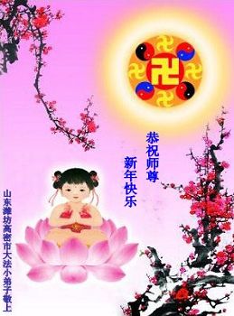 感谢师父救度之恩! 江苏淮安大法小弟子跪拜 山东省烟台市福山区大法小弟子恭祝师父过年好!