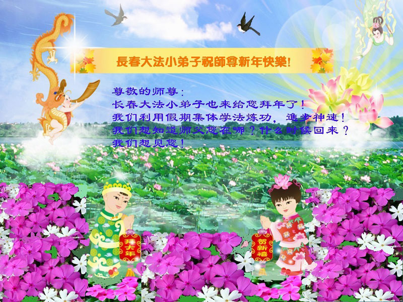 北京通州六岁大法小弟子恭祝师父新年快乐! 一位老和尚、吉林省长春大法弟子、大法小弟子问师父好!祝师父新年快乐!