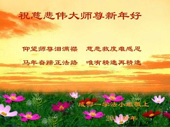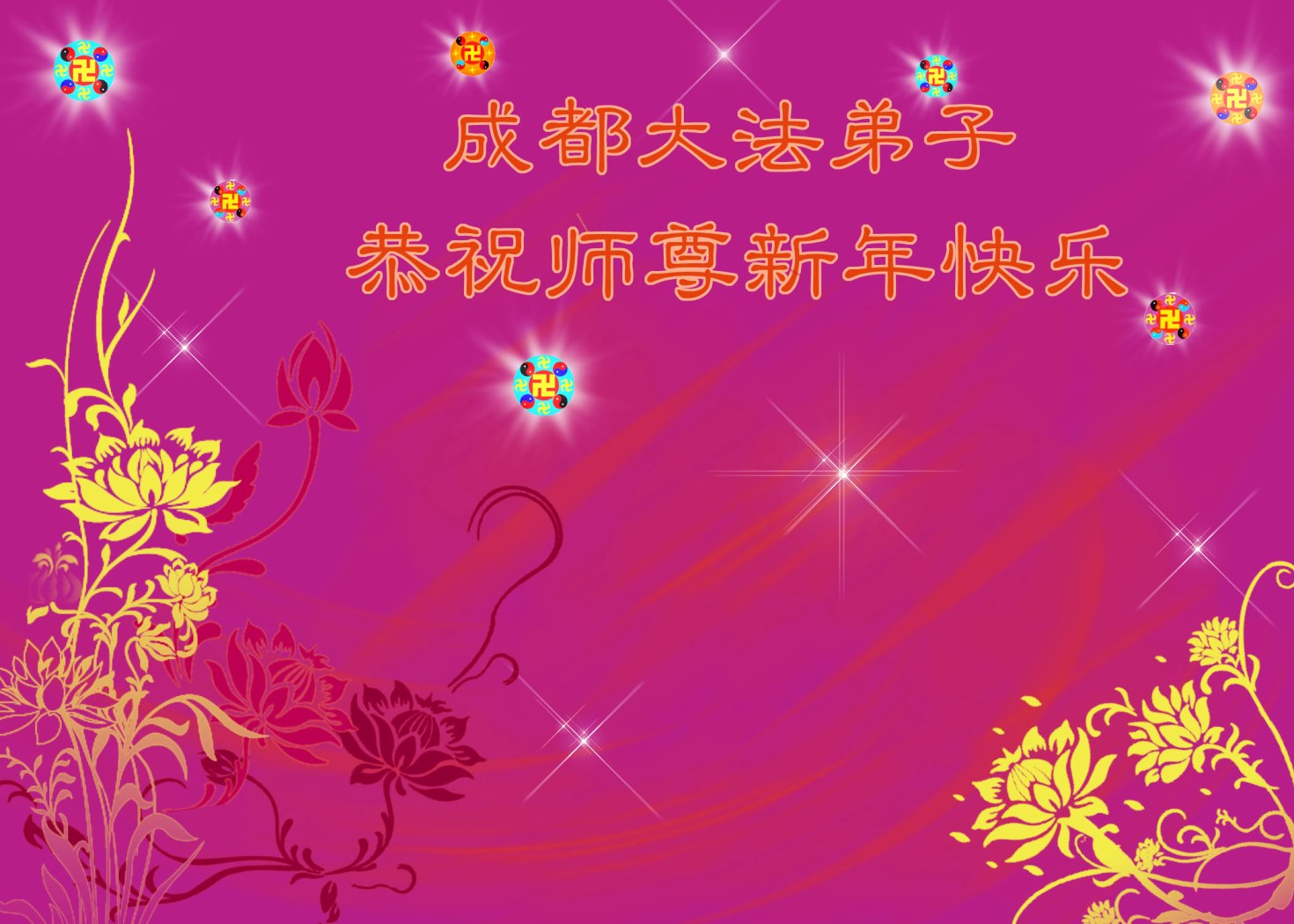 四川省成都大法弟子恭祝慈悲伟大的师父新年快乐!