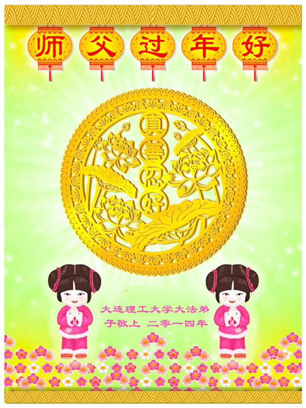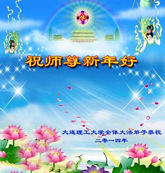 弟子一定认认真真做好三件事,精進再精進,修好自己,救度更多可贵、可怜的众生!紧跟师尊,完成使命,兑现誓约! 辽宁省大连理工大学全体大法弟子于二零一四年中国新年向师尊拜年!