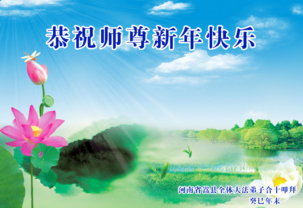 河南省嵩县全体大法弟子恭祝慈悲伟大的师尊新年快乐,弟子们想念师尊!在新的一年里,弟子们会精進不止,修炼如初,用圆满来回报师恩! 河南省新乡大法弟子恭祝师父新年好!