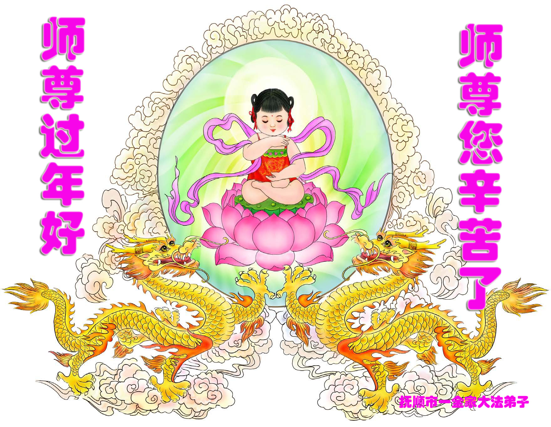 师尊过年好!师尊您辛苦了!抚顺市一全家大法弟子 2014年1月17日 辽宁省抚顺一大法弟子恭祝师尊新年快乐!