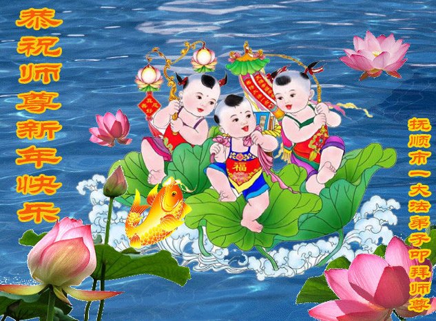 新年佳节倍思亲,隔洋遥望拜师尊。 感恩师尊赐法缘,感恩师尊解迷津。 感恩师尊常呵护,感恩师尊铸金身。 学法入心添正念,勇猛精進多救人。 师尊教诲心铭记,助师正法了洪愿。 喜迎师尊归中土,顶礼圣拜谢师尊。 恭祝师尊新年好,恭祝师尊新年快乐。 辽宁省抚顺一大法弟子恭祝师尊新年好!