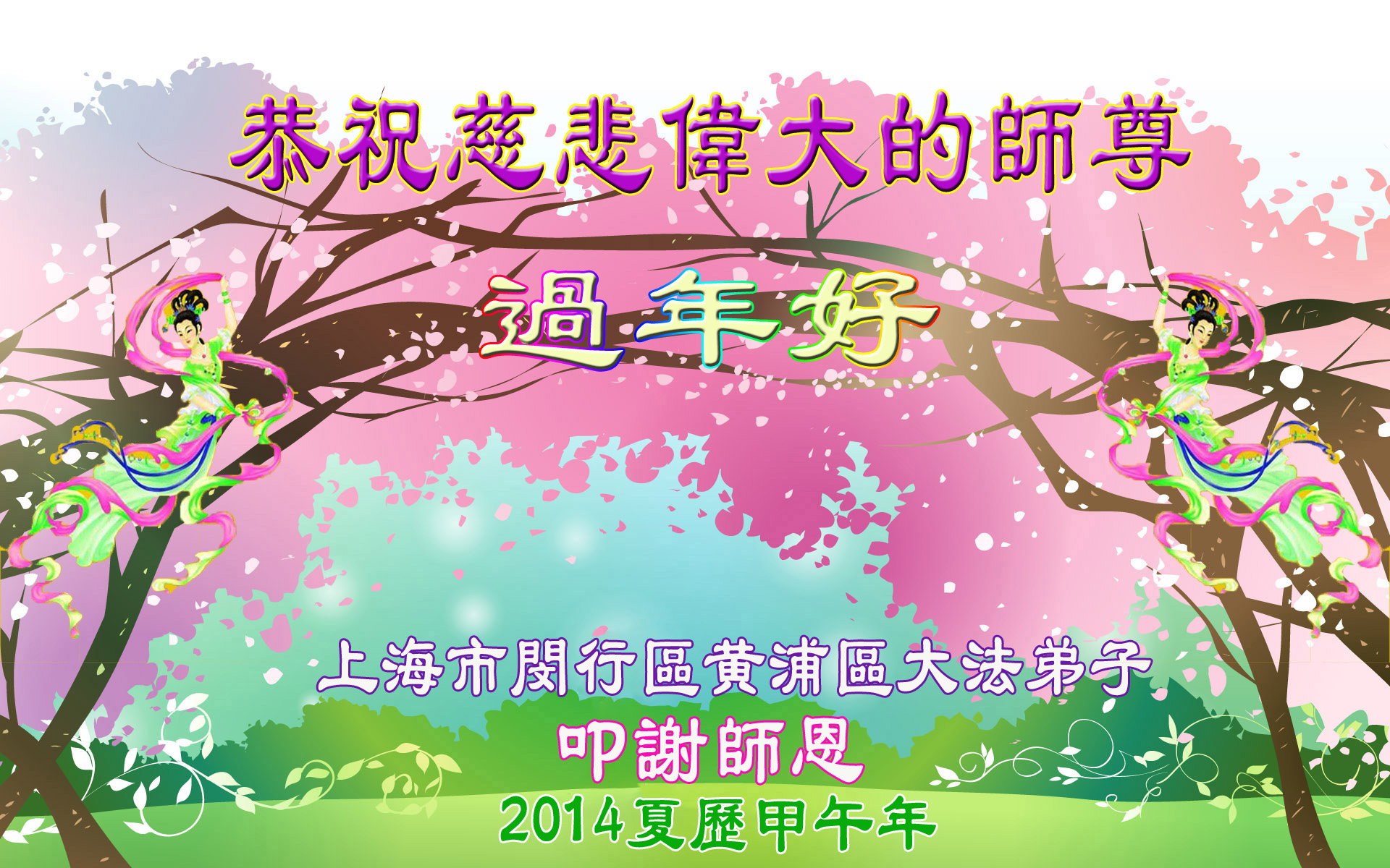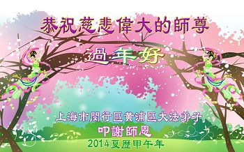 【明慧网二零一四年一月三十一日】 上海浦东一学法小组大法弟子恭贺师尊过年快乐