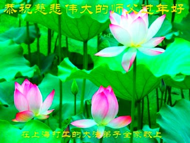我们是上海大法弟子,在新的一年里我们会加紧做好三件事,以报师恩!谢谢师父的慈悲救度!祝师父过年好! 上海市徐汇区大法弟子恭祝师父过年好!