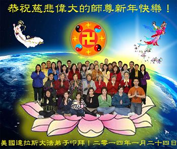 美国德州达拉斯全体大法弟子恭祝慈悲伟大的师尊新年快乐!