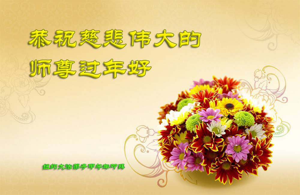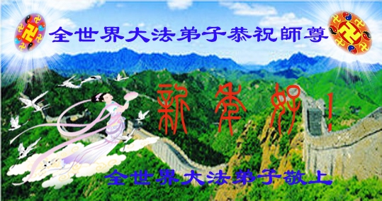 来自大陆广东省广州的纽约大法弟子恭祝慈悲伟大的师尊新年好!