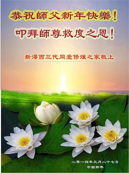 师父,您的无量智慧、博大的胸怀、浩荡的慈悲洗涤着我们的一切。用尽我们生命的所有也无以回报。仅在此时,献上我们诚挚的感恩之心,恭贺师父新年好! 美国伊利诺伊州修炼大法之家恭祝师尊过年好!